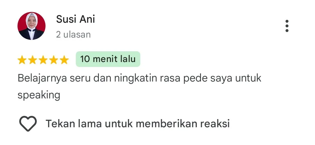 Tingkatkan kemampuan bahasa Inggris secara signifikan melalui sesi belajar intensif yang diadakan setiap Senin sampai Jumat.