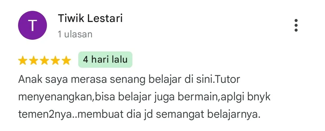 Kami membatasi jumlah peserta (maksimal -+ 15 siswa per kelas) untuk menjamin perhatian penuh dari tutor dan suasana belajar yang lebih efektif.