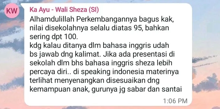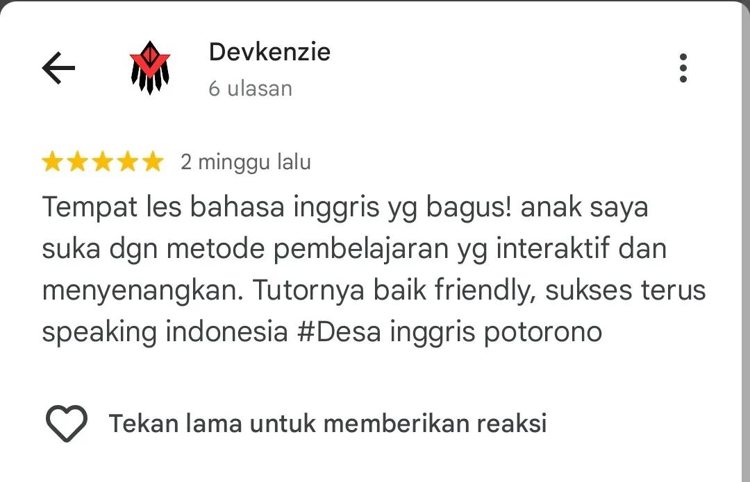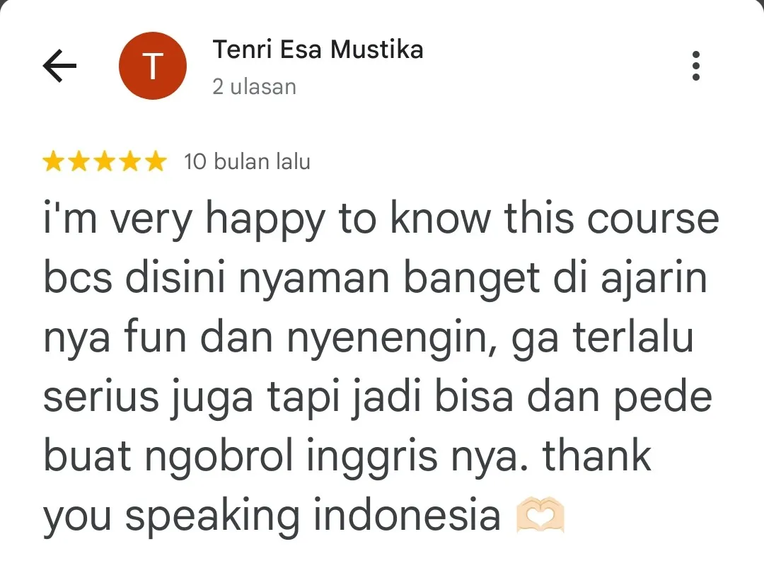 Didampingi oleh pengajar yang profesional, ramah (friendly), dan memiliki cara mengajar yang menyenangkan (fun).